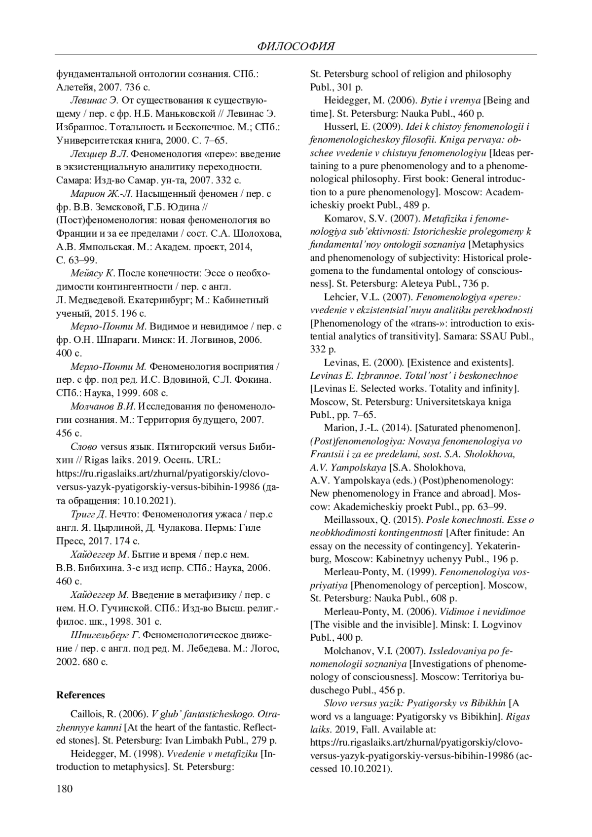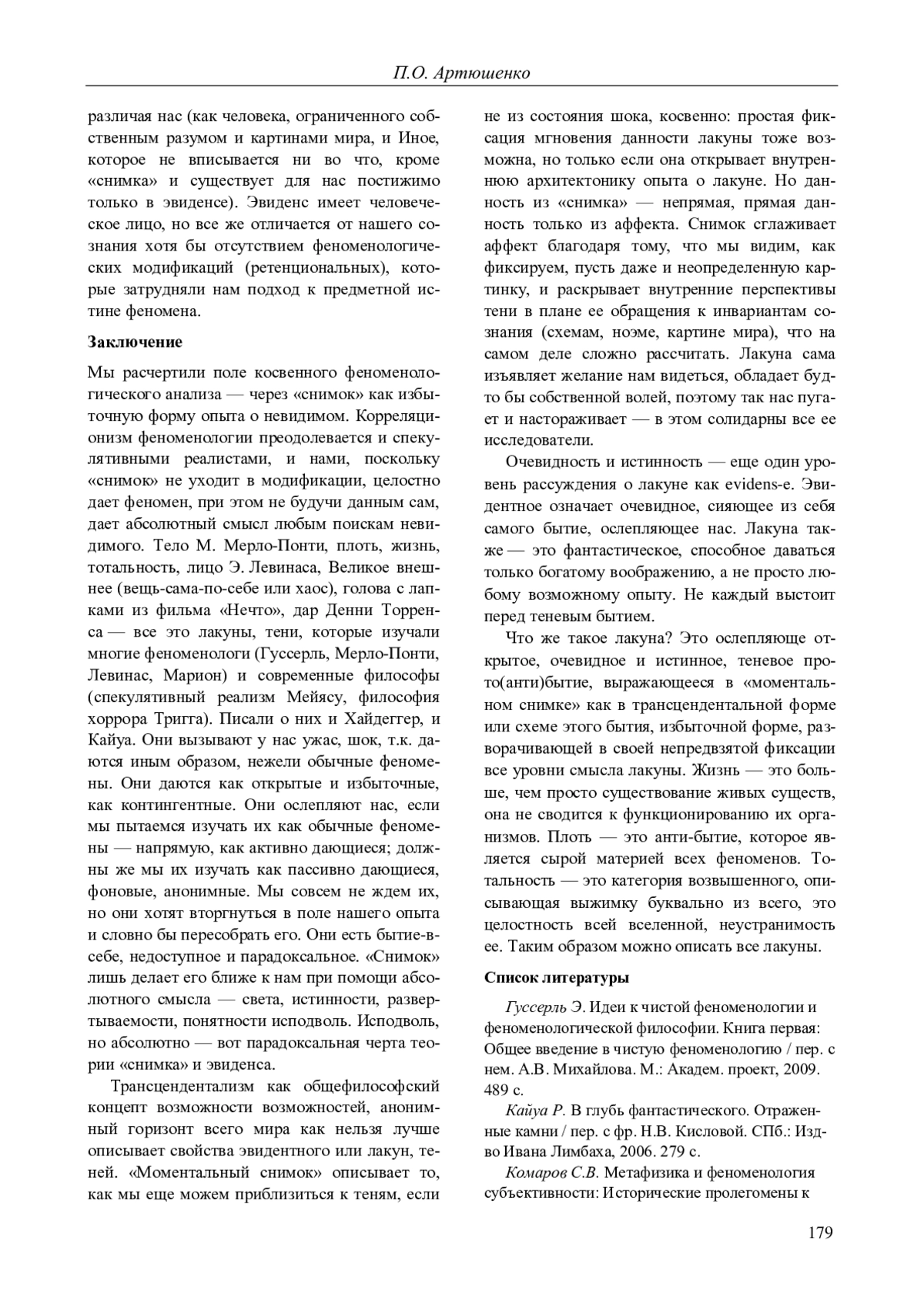 Ключевые фразы: феноменология, спекулятивный реализм, evidens, лакуна, корреляционистский круг, моментальный снимок, ГОРИЗОНТ, трансцендентализм