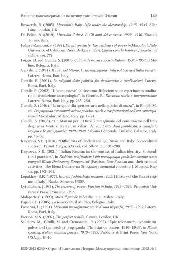 1. Белоусов 2000 - Белоусов Л.С. Режим Муссолини и массы. М.: Изд-во МГУ, 2000. 368 с.