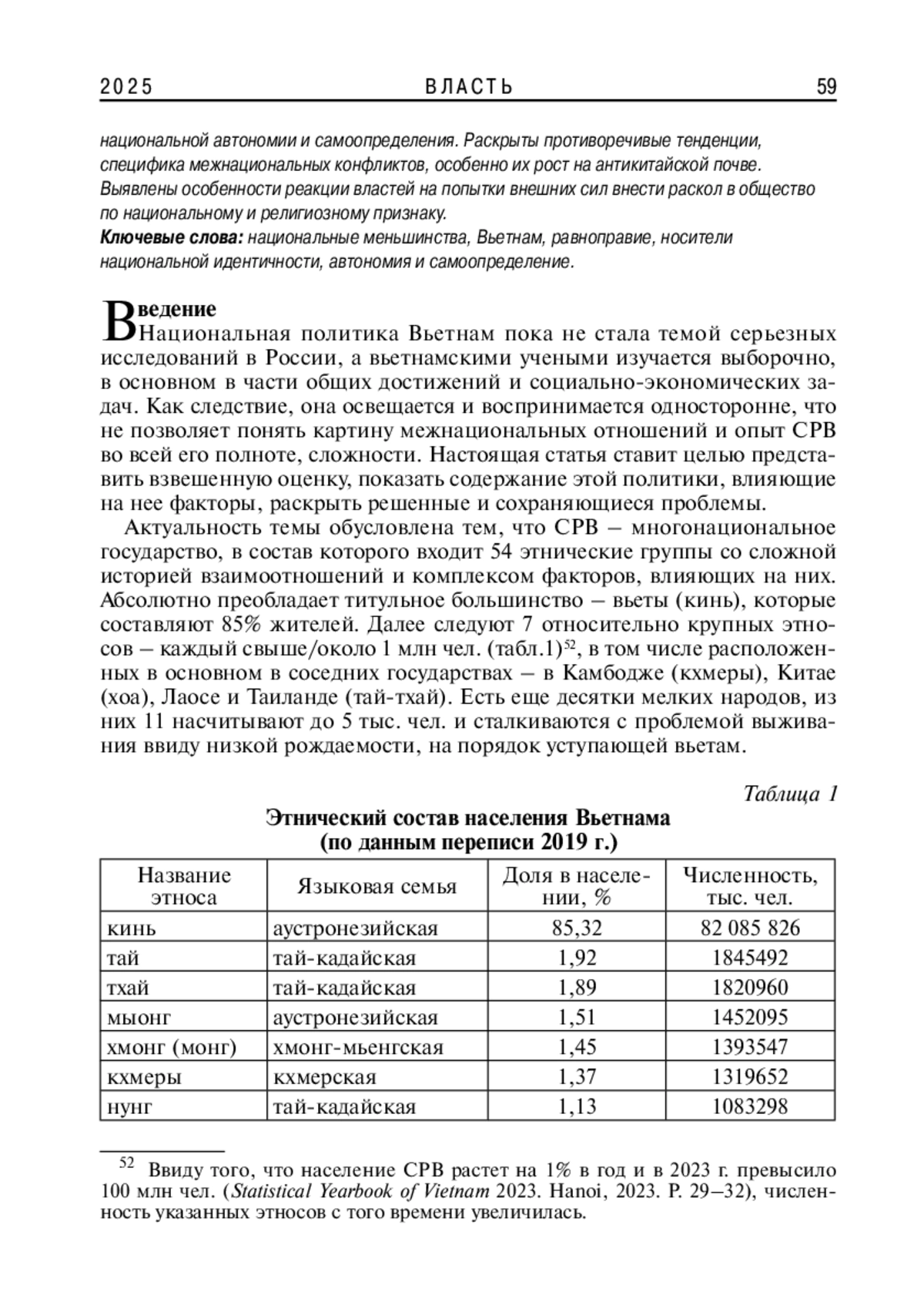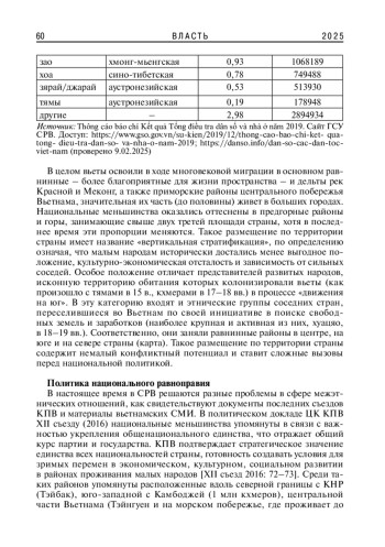 В статье приведена характеристика межнациональных отношений во Вьетнаме и политики государства в этой сфере. Показаны его этнический состав, гарантии равноправия, межнационального мира и согласия через развитие языков, письменности, культуры, свободу вероисповедания и участия в органах власти. Дана оценка проблемы национальной автономии и самоопределения. Раскрыты противоречивые тенденции, специфика межнациональных конфликтов, особенно их рост на антикитайской почве. Выявлены особенности реакции властей на попытки внешних сил внести раскол в общество по национальному и религиозному признаку.