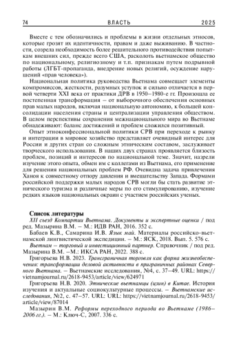 12. Чан В.Х., Нгуен Т.Т., Ле Т.М. 2020. Земельные конфликты среди этнических меньшинств горных районов Северного Вьетнама в 1986-2017 гг. - Вьетнамские исследования. № 1, с. 18-27. URL: https://vietnamjournal.ru/2618-9453/article/view/86996/65178. EDN: IBBWXO