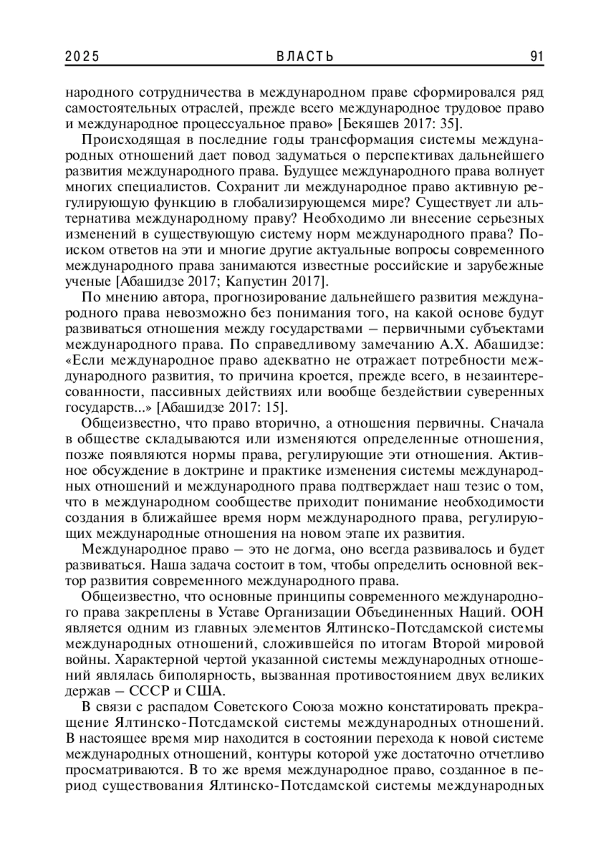 2. 	Бекяшев К.А. 2017. Необходимо ли внесение серьезных изменений в существующую систему норм международного права? - Будущее международного права: сборник статей. - М.: Проспект. С. 17-47.