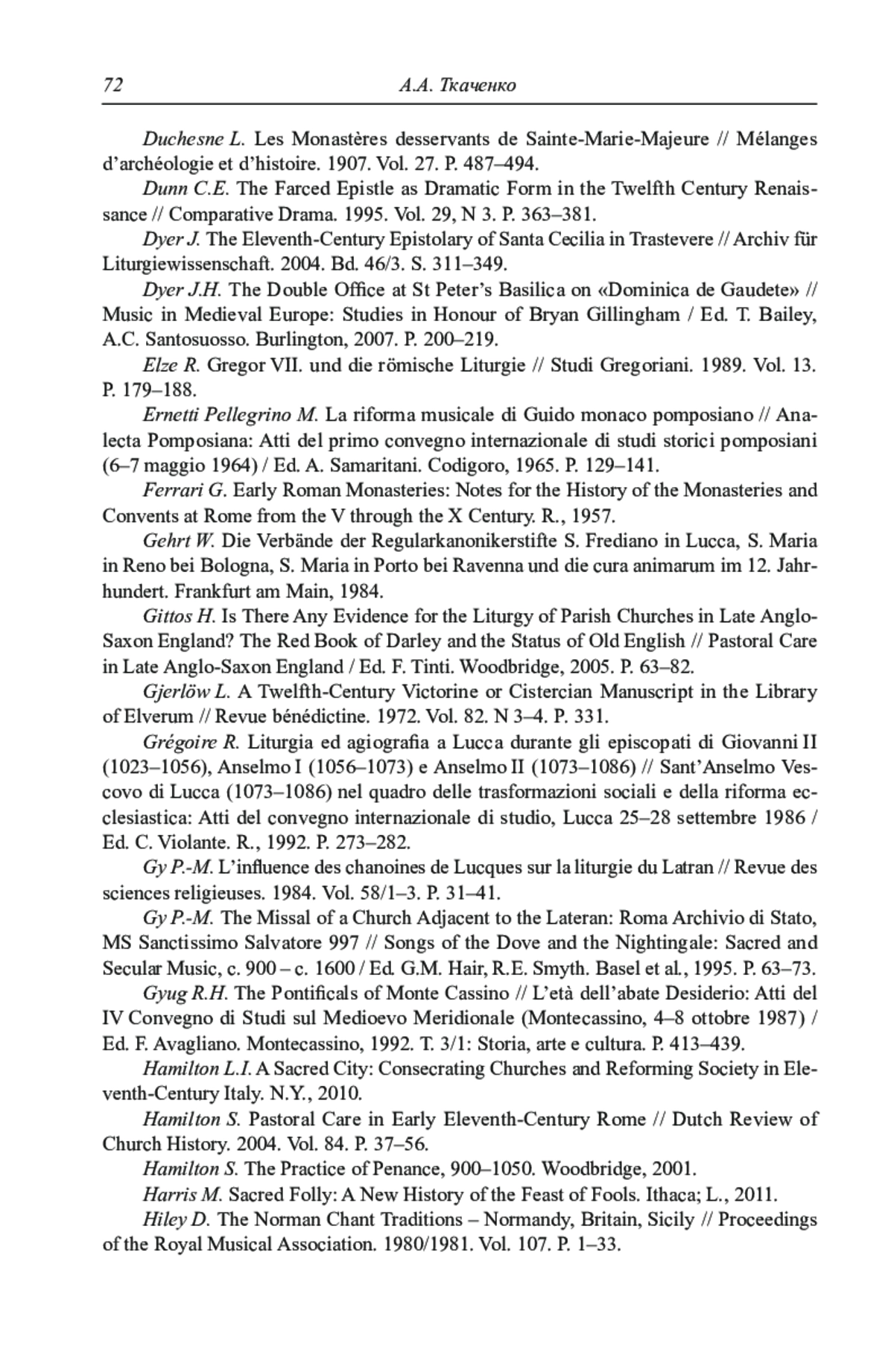 21. Dyer J. The Eleventh-Century Epistolary of Santa Cecilia in Trastevere // Archiv für Liturgiewissenschaft. 2004. Bd. 46/3. S. 311-349.