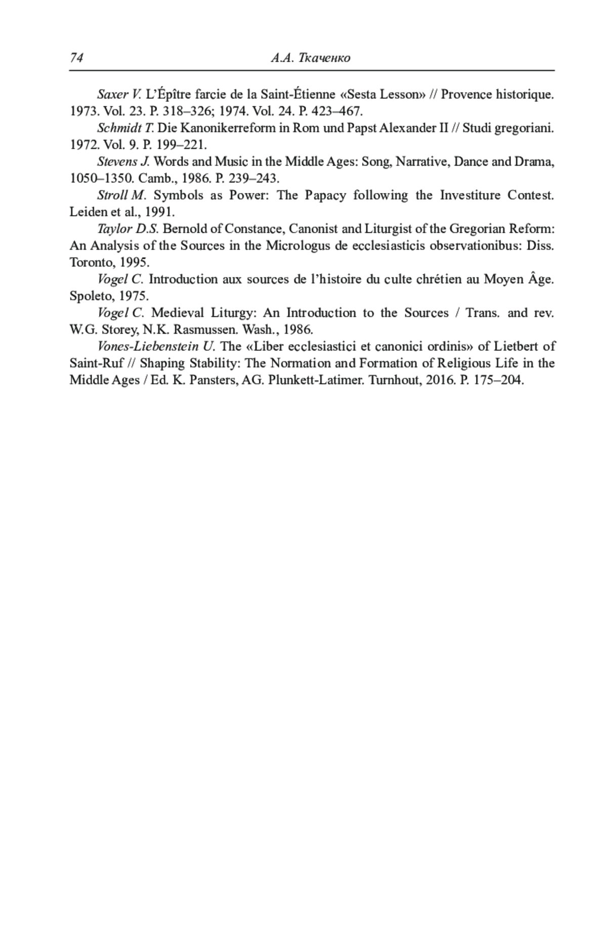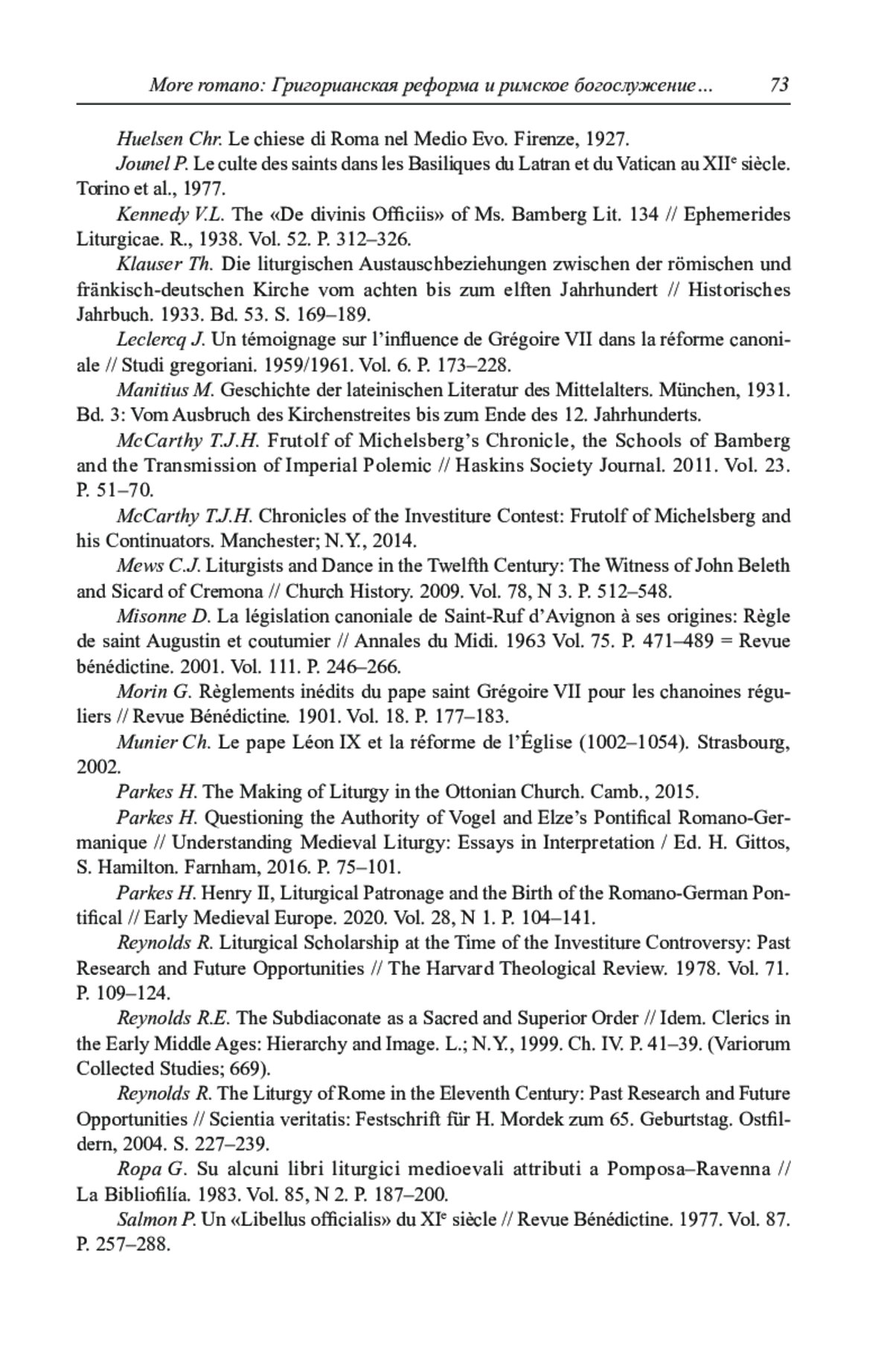 42. Klauser Th. Die liturgischen Austauschbeziehungen zwischen der römischen und fränkisch-deutschen Kirche vom achten bis zum elften Jahrhundert // Historisches Jahrbuch. 1933. Bd. 53. S. 169-189.