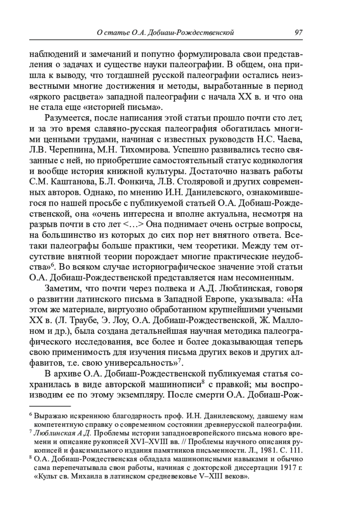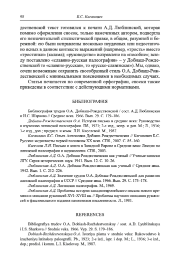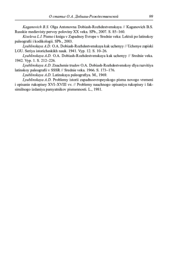 7. Люблинская А.Д. Значение трудов О.А. Добиаш-Рождественской для развития латинской палеографии в СССР // Средние века. 1966. Вып. 29. С. 173-178. EDN: ZMQCSL