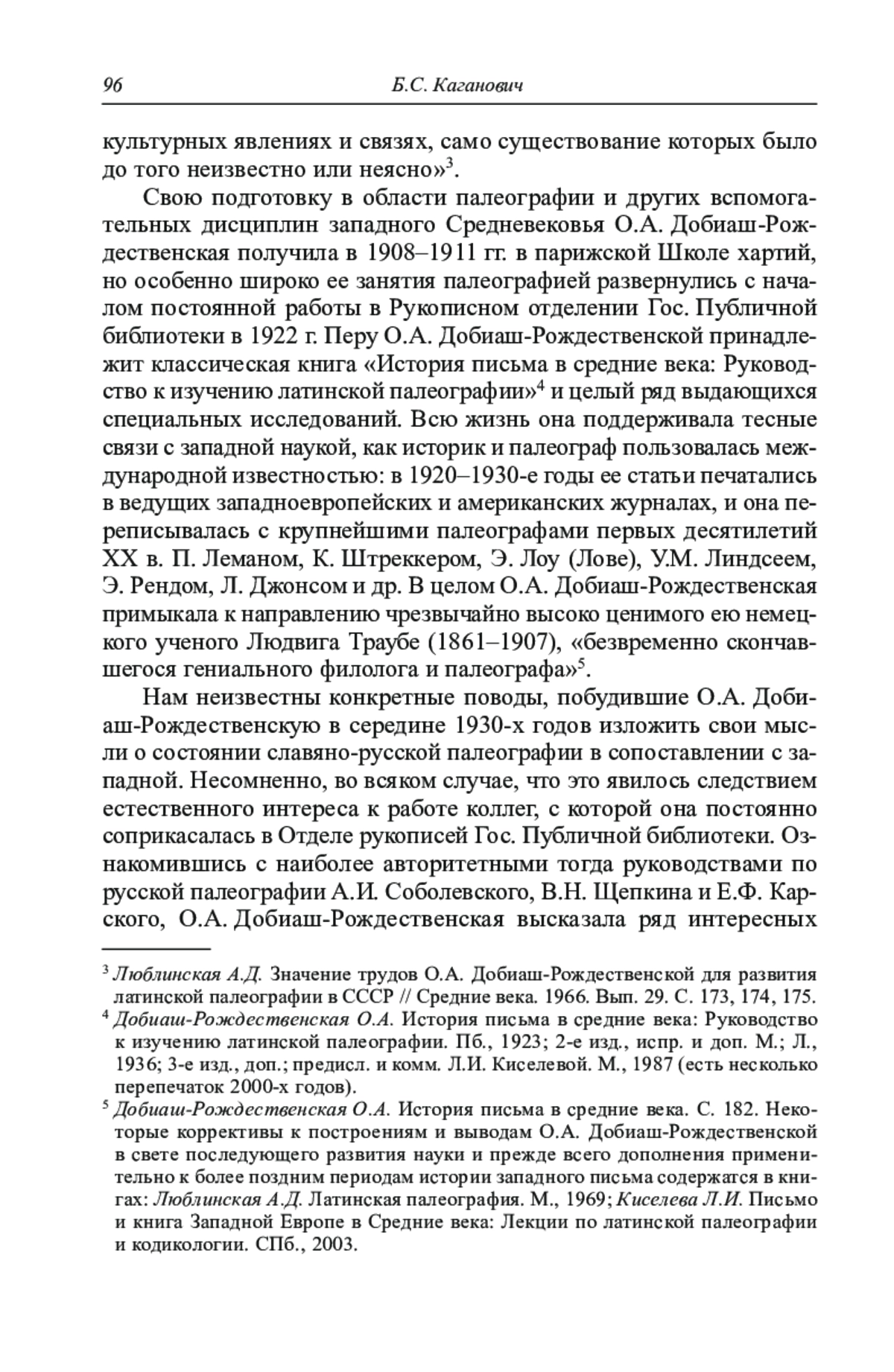 3. Каганович Б.С. Ольга Антоновна Добиаш-Рождественская // Каганович Б.С. Русские медиевисты первой половины ХХ века. СПб., 2007. С. 85-160. EDN: QPFKZN
