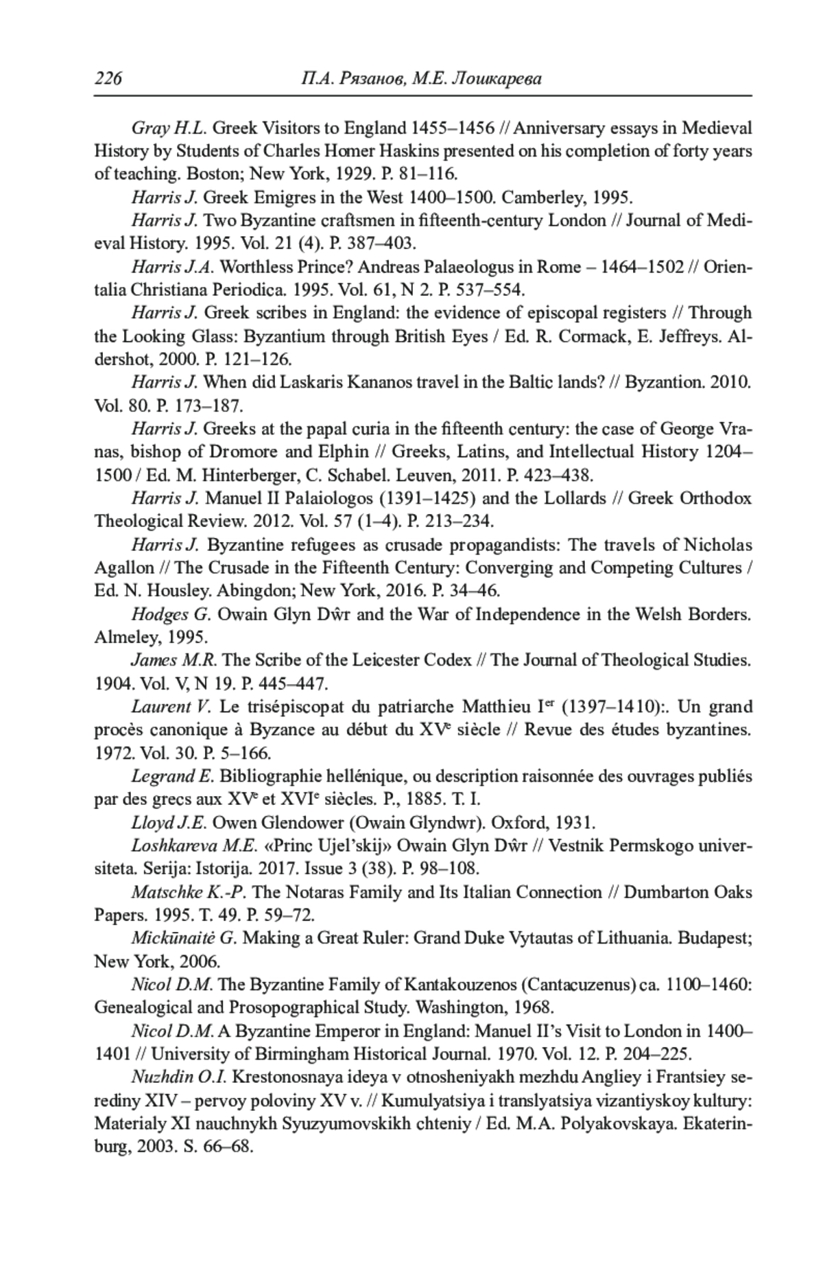 25. Harris J. Manuel II Palaiologos (1391-1425) and the Lollards // Greek Orthodox Theological Review. 2012. Vol. 57 (1-4). P. 213-234.