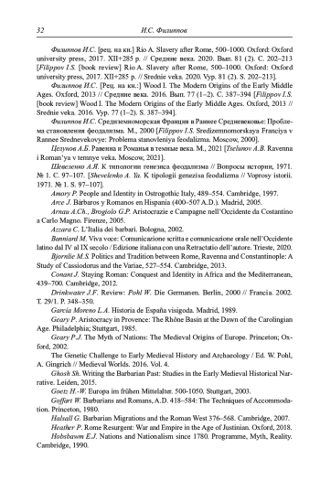 20. Филиппов И.С. [рец. на кн.] Rio A. Slavery after Rome, 500-1000. Oxford: Oxford university press, 2017. XII+285 p. // Средние века. 2020. Вып. 81 (2). С. 202-213.