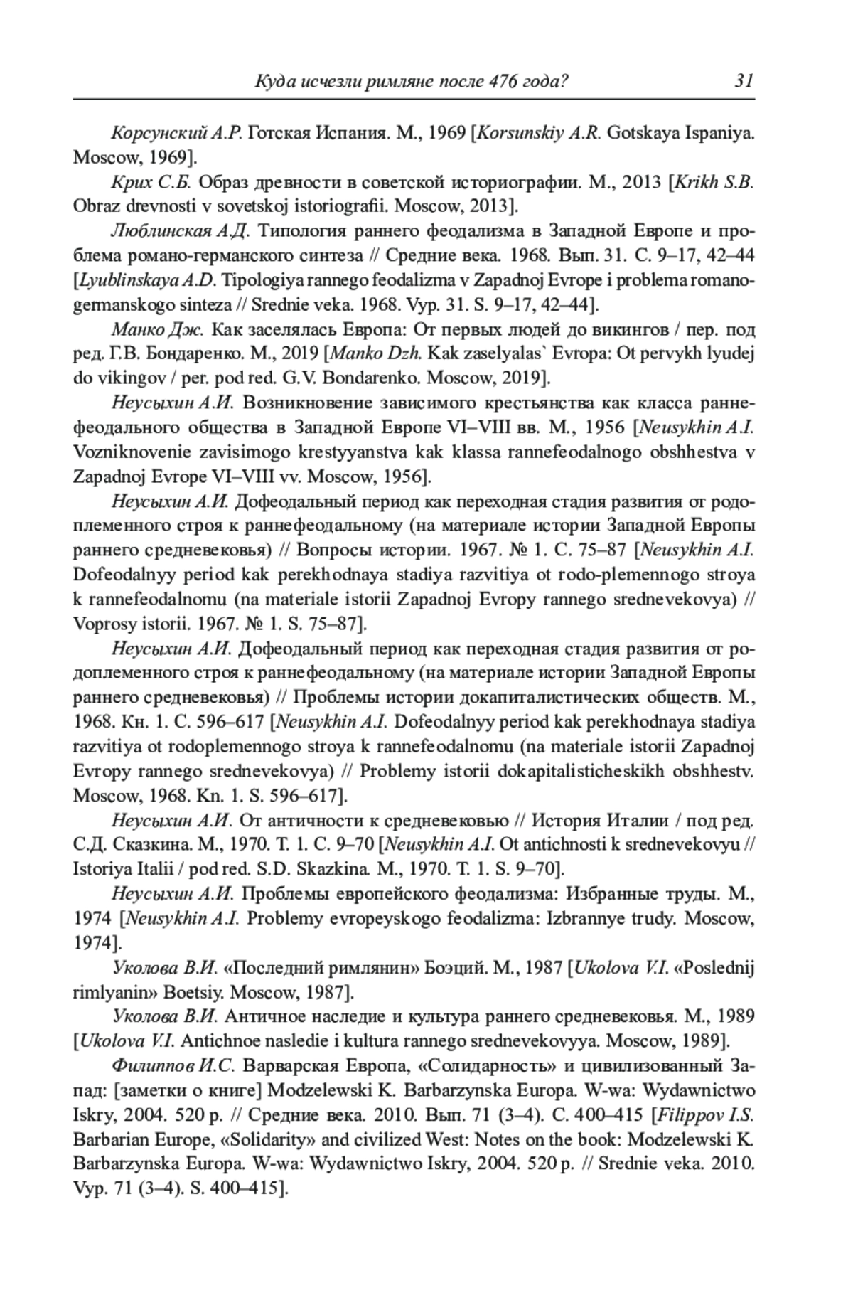 13. Неусыхин А.И. Дофеодальный период как переходная стадия развития от родо-племенного строя к раннефеодальному (на материале истории Западной Европы раннего средневековья) // Вопросы истории. 1967. № 1. С. 75-87.