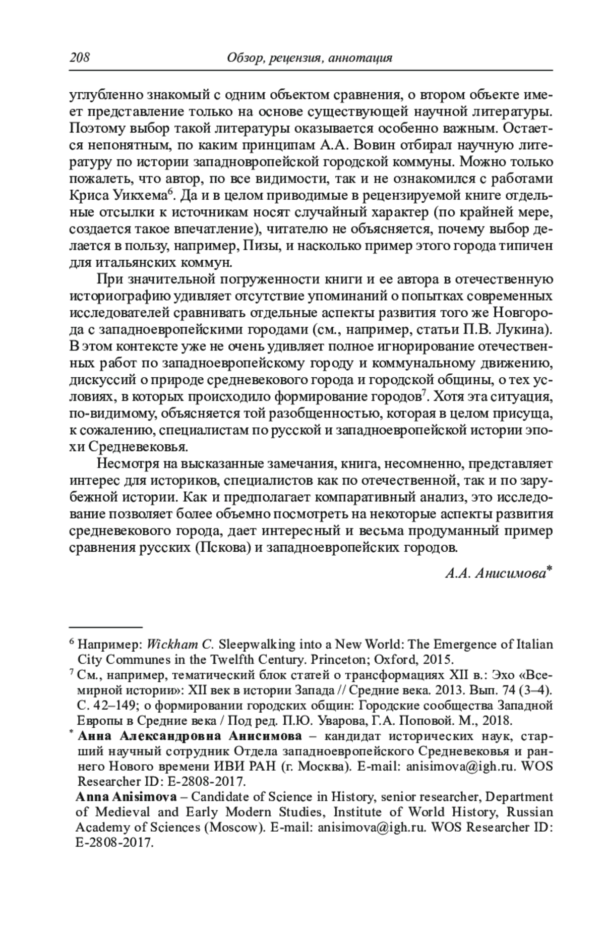 6. 	Wickham C. Sleepwalking into a New World: The Emergence of Italian City Communes in the Twelfth Century. Princeton; Oxford, 2015.