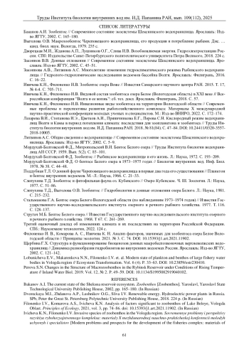 1. 	Баканов А.И. Зообентос // Современное состояние экосистемы Шекснинского водохранилища. Ярославль: Изд-во ЯГТУ, 2002. С. 165-180.