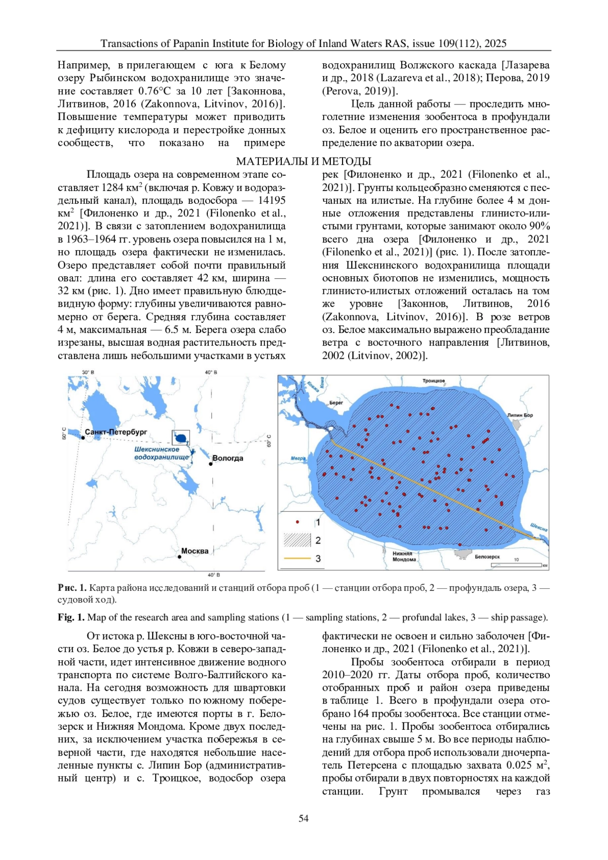 22. 	Lobunicheva E.V., Makarenkova N.N., Filonenko I.V. et. al. Modern state of plankton and benthos of large fishery water bodies in Vologda region // Ecosystem Transformation. Vol. 6 (4). P. 33-63. DOI: 10.23859/estr230410