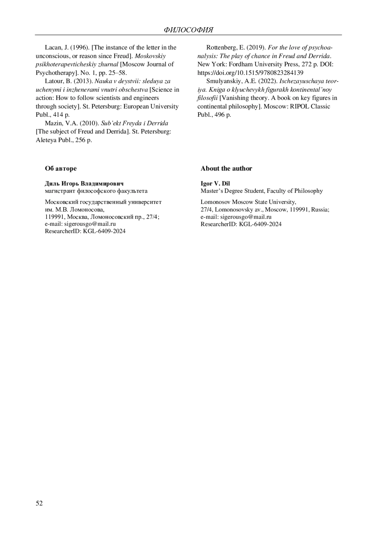 7. 	Деррида Ж. Фрейд и сцена письма // Деррида Ж. Письмо и различие / пер. с фр. Д.Ю. Кралечкина. М.: Академ. проект, 2020. С. 321-371.