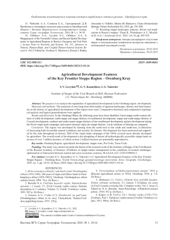 16. Chibilyov А.А., Levykin S.V., Chibilyov А.А. Jr. Megaprojects of the Twentieth Century and Recent Spatial Developments in Agricultural Regions in Russia’s European and Ural Parts II Lecture Notes in Networks and Systems, Vol. 252. Advances in Natural, Human-Made, and Coupled Human-Natural Systems Research. (Vol.3) Edited by: Svetlana G. Maximova, Roman I. Raikin, Alexander A. Chibilev, Marina M. Silantyeva. Cham (Switzerland): Springer Nature Switzerland AG, 2023, рр. 191-200. EDN: TEPXQS