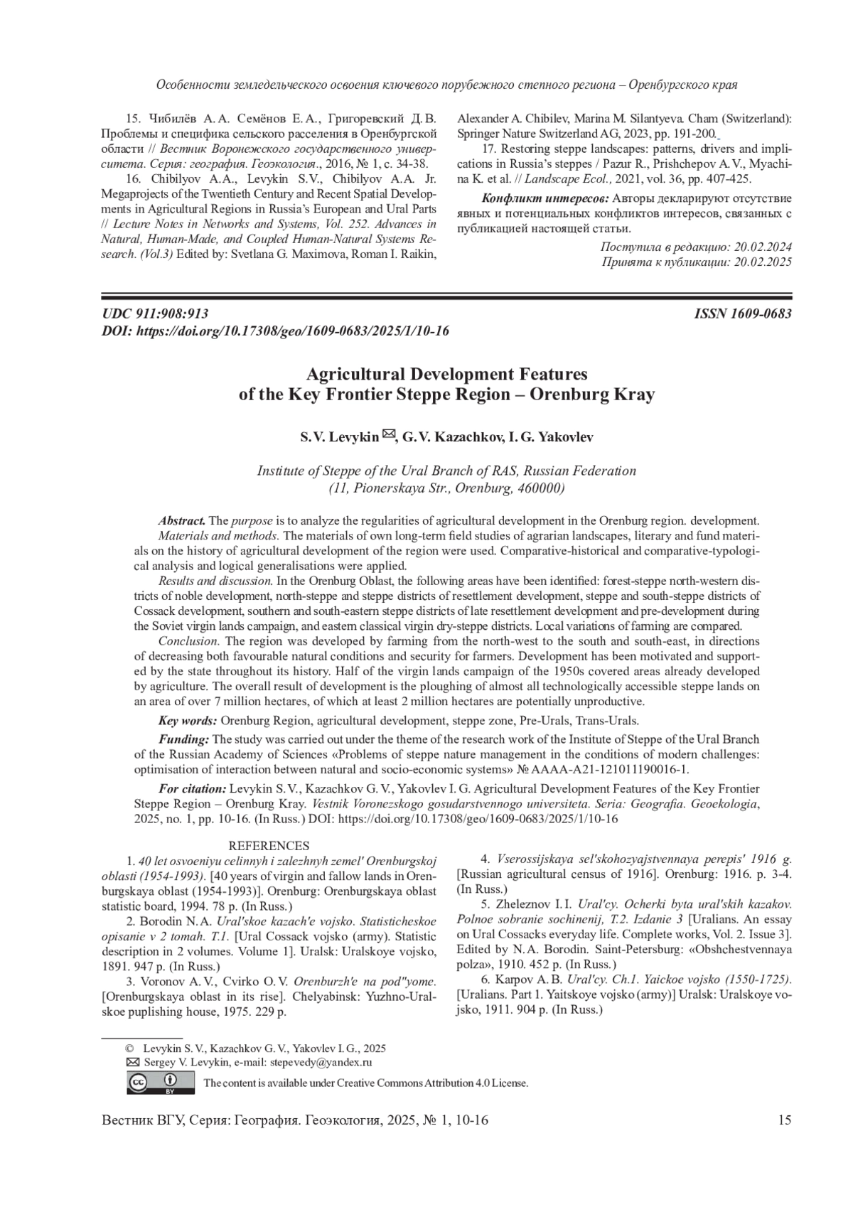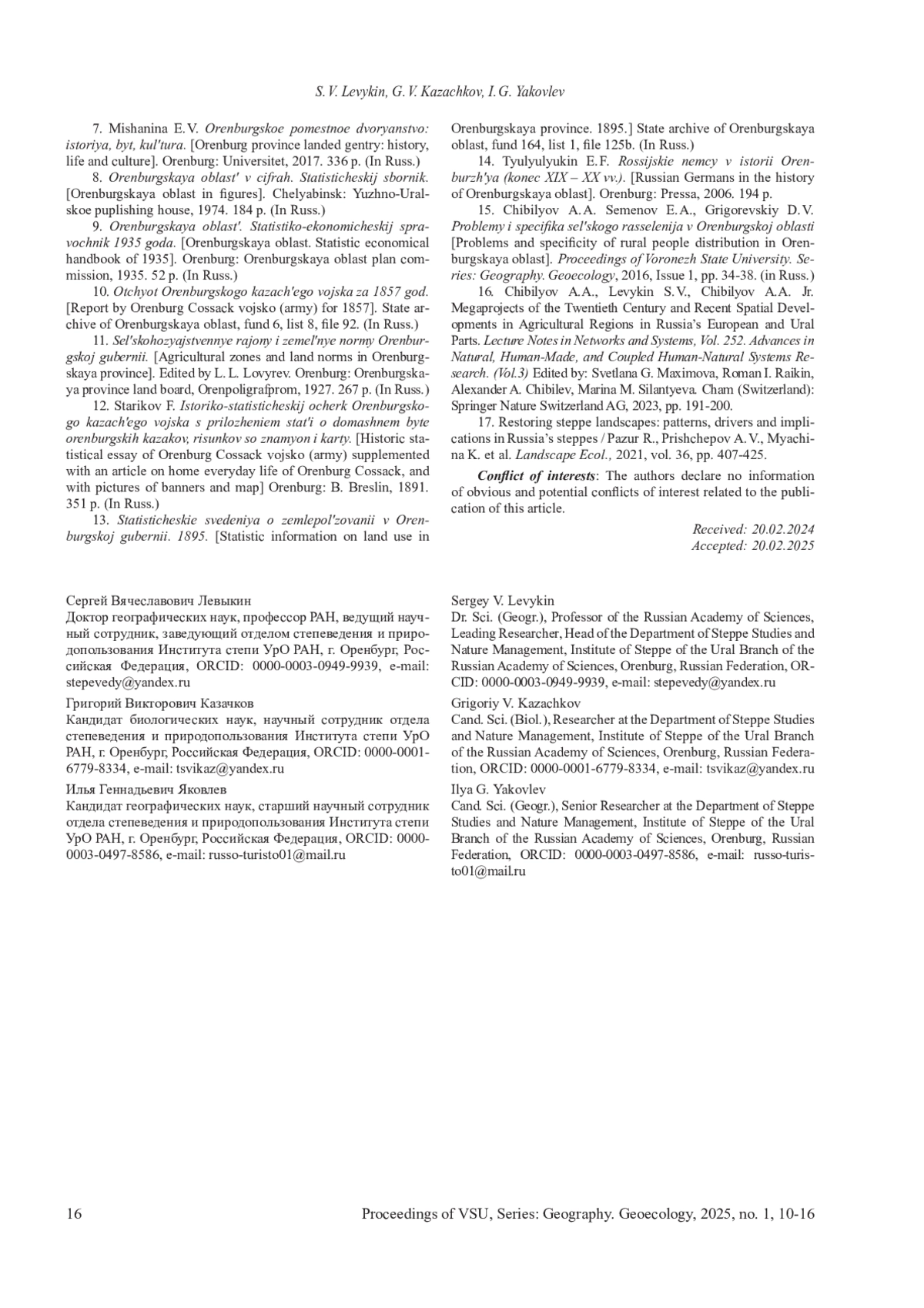 15. Чибилёв А.А. Семёнов Е.А., Григоревский Д.В. Проблемы и специфика сельского расселения в Оренбургской области // Вестник Воронежского государственного университета. Серия: география. Геоэкология., 2016, № 1, с. 34-38. EDN: VVSHQL