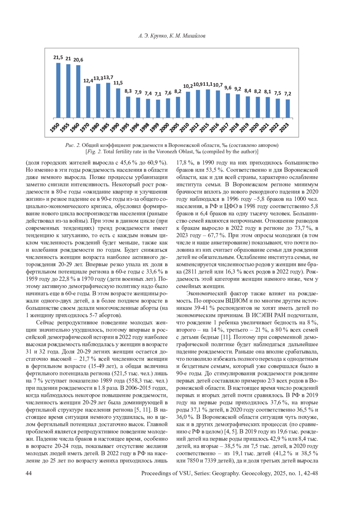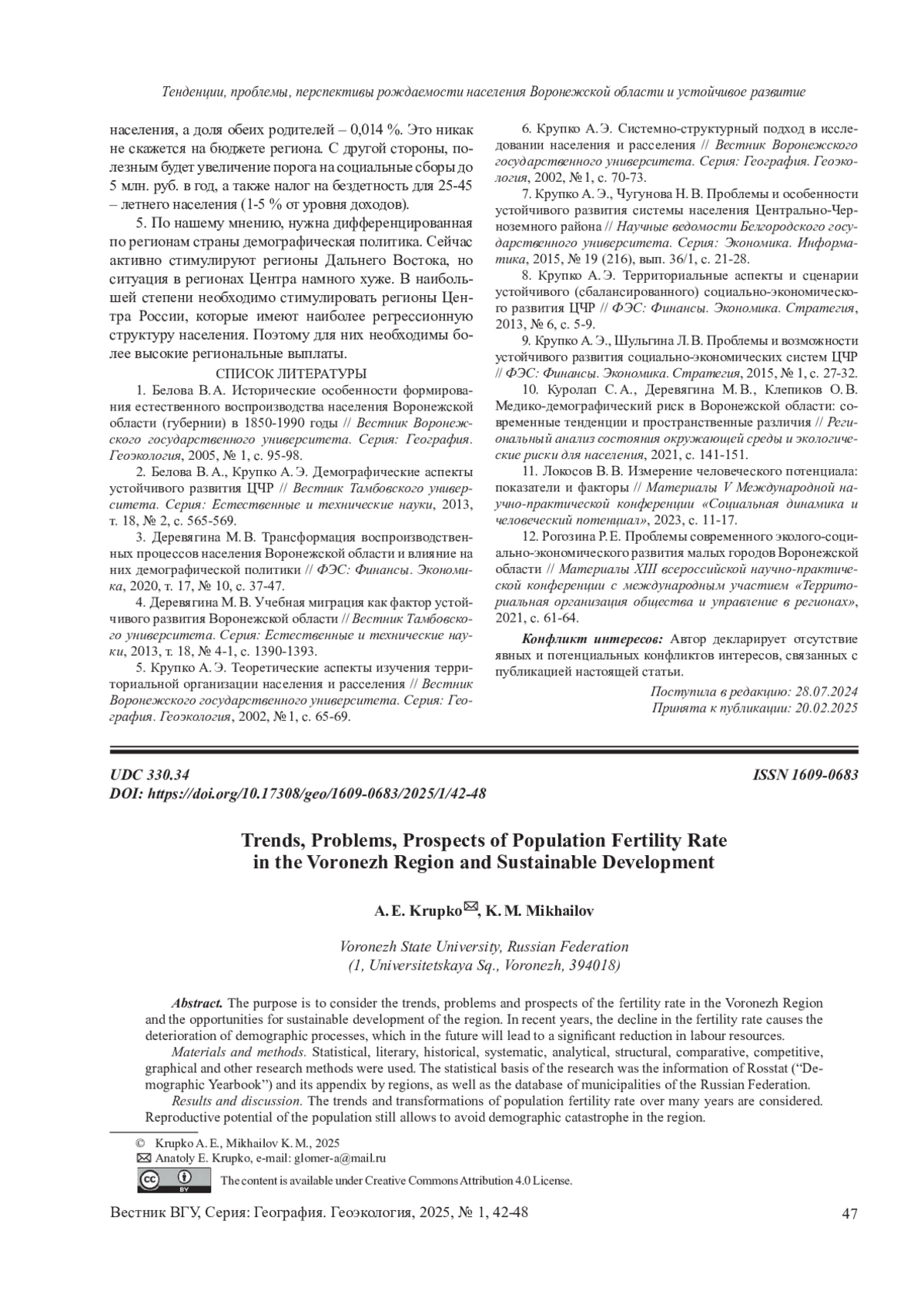 1. Белова В. А. Исторические особенности формирования естественного воспроизводства населения Воронежской области (губернии) в 1850-1990 годы // Вестник Воронежского государственного университета. Серия: География. Геоэкология, 2005, № 1, с. 95-98. EDN: KAJVVD