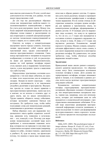 1. 	Gibbs, R.W. (2005). The psychological status of image schemas. Hampe B., Grady J.E. (eds.) From perception to meaning: Image Schemas in Cognitive Linguistics. Berlin, DE: Mouton de Gruyter Publ., pp. 113-136. DOI: 10.1515/9783110197532.2.113