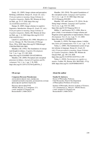 10. 	Szwedek, A. (2019). The image schema: A definition. Styles of Communication. Vol. 11, no. 1, pp. 7-28.