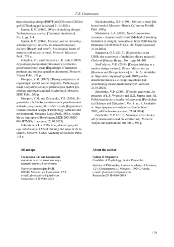 11. Степанова Г.Б. Эргономика в СССР: опыт междисциплинарных исследований // Человек. 2017. № 1. С. 94-103. EDN: XXRUQP