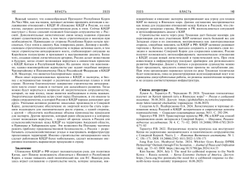 5. 	Jong Eun Lee, Hanbyeol Sohn. 2024. Whither Goes Russia-DPRK Partnership? Outlook through Five Scenarios. - Journal of Peace and Unification 14(4), pp. 33-63. DOI: 10.31780/jpu.2024.14.4.33 Kim Saeme. 2024, July 5. The need for calibrated response to the North Korea - Russia summit. - Korea Economic Institute of America. Доступ: https://keia.org/the-peninsula/the-need-for-a-calibrated-response-to-the-north-korea-russia-summit (проверено: 16.06.2025).