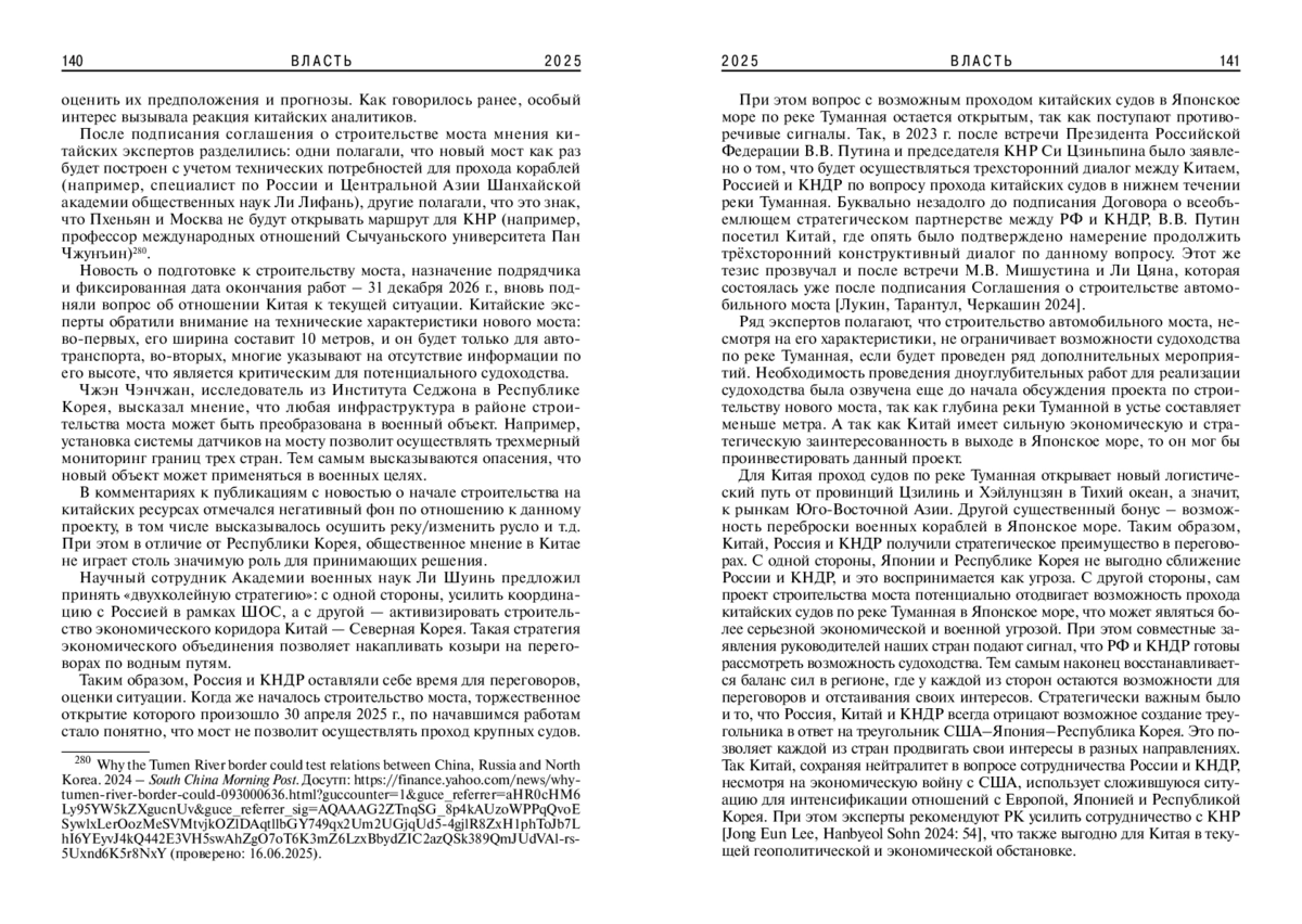 1. 	Лукин А., Тарантул R, Черкашин П. 2024. Туманная геополитика: получит ли Китай прямой путь в Японское море? - Россия в глобальной политике. 30.08.2024. Доступ: https://globalaffairs.ru/articles/yaponskoe-more-lukin-tarantul-cherkashin (проверено: 16.06.2025).