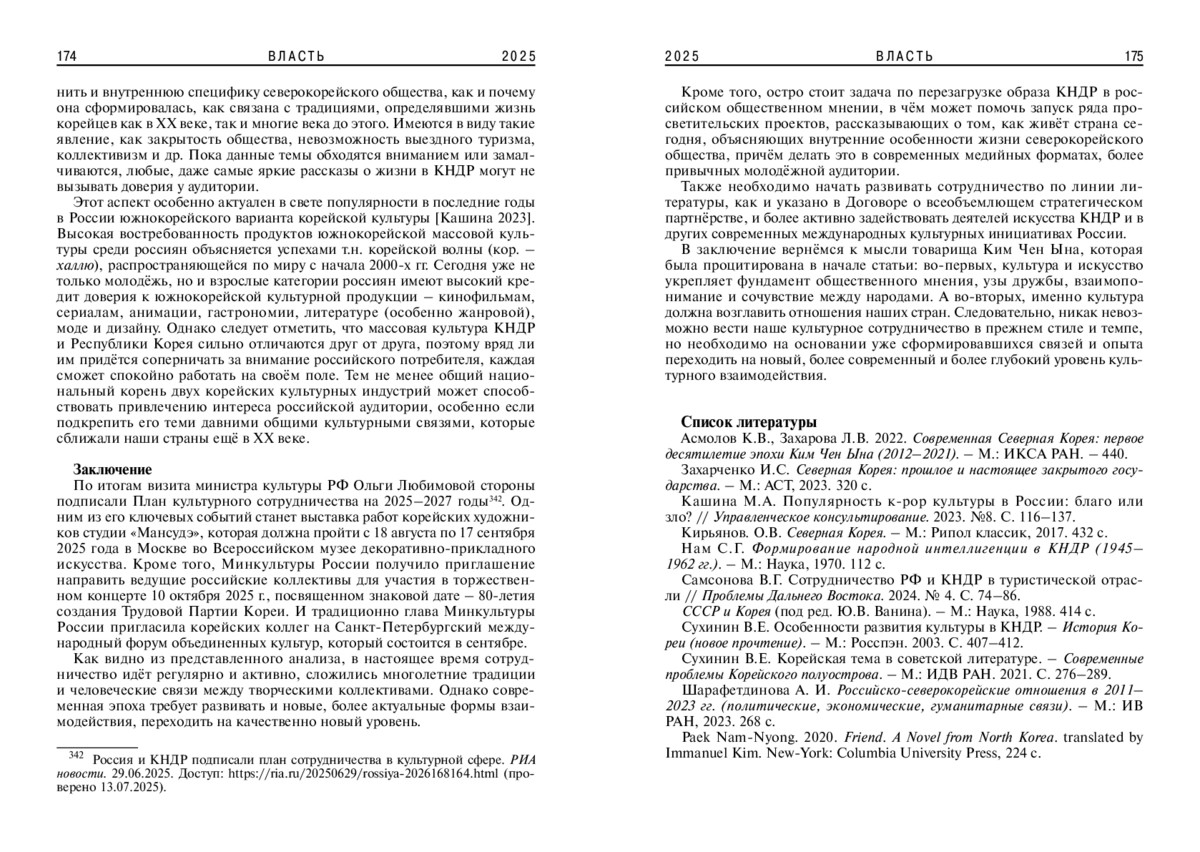 1. 	Асмолов К.В., Захарова Л.В. 2022. Современная Северная Корея: первое десятилетие эпохи Ким Чен Ына (2012-2021). - М.: ИКСА РАН. - 440. EDN: ZRUGEF