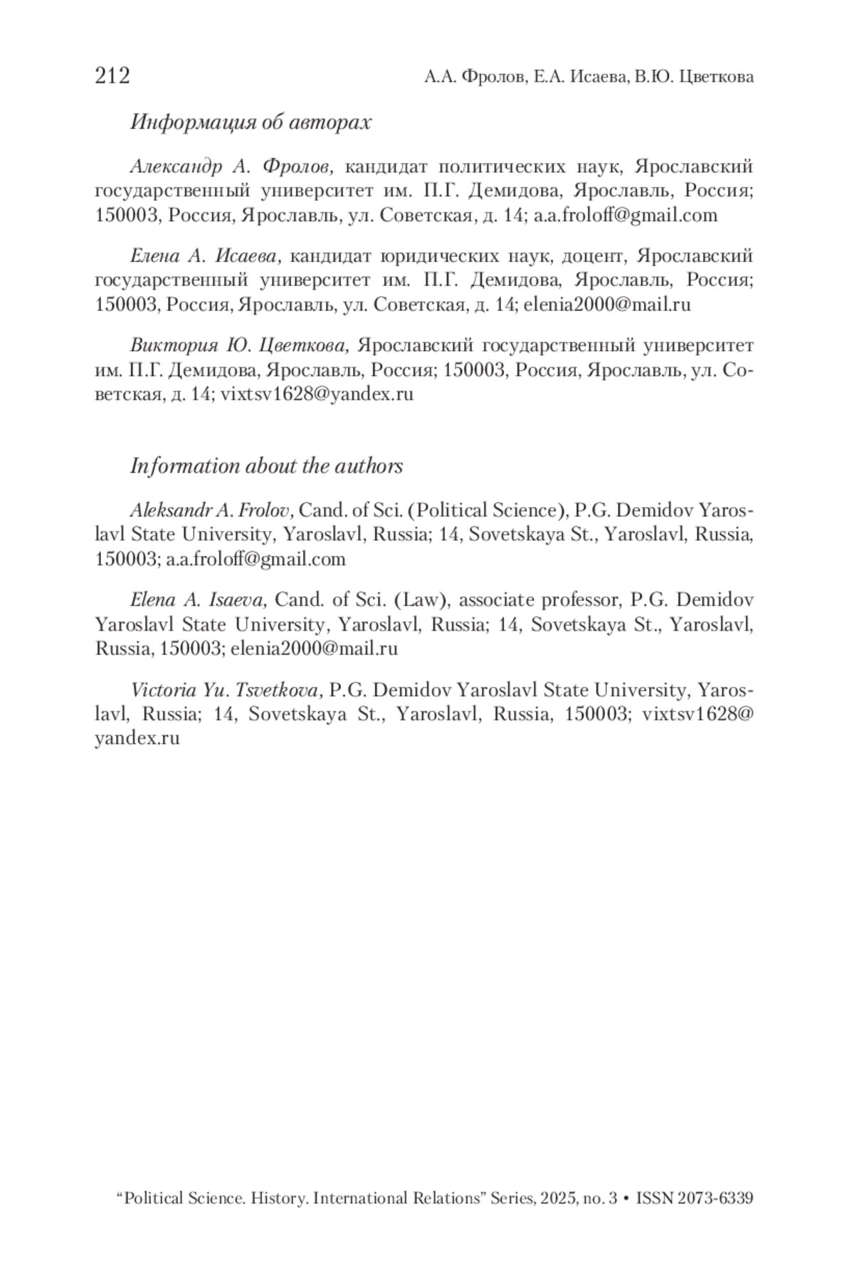 2. Бабкина, Понамарев 2023 - Бабкина А.О., Понамарев А.Б. Слабое гражданское общество как ключевая проблема публичной власти в современной России // Молодой ученый. 2023. № 18 (465). С. 269-271.