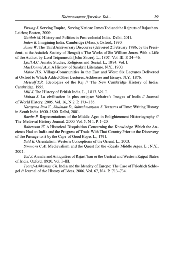 18. 	Freitag J. Serving Empire, Serving Nation: James Tod and the Rajputs of Rajasthan. Leiden; Boston, 2009.