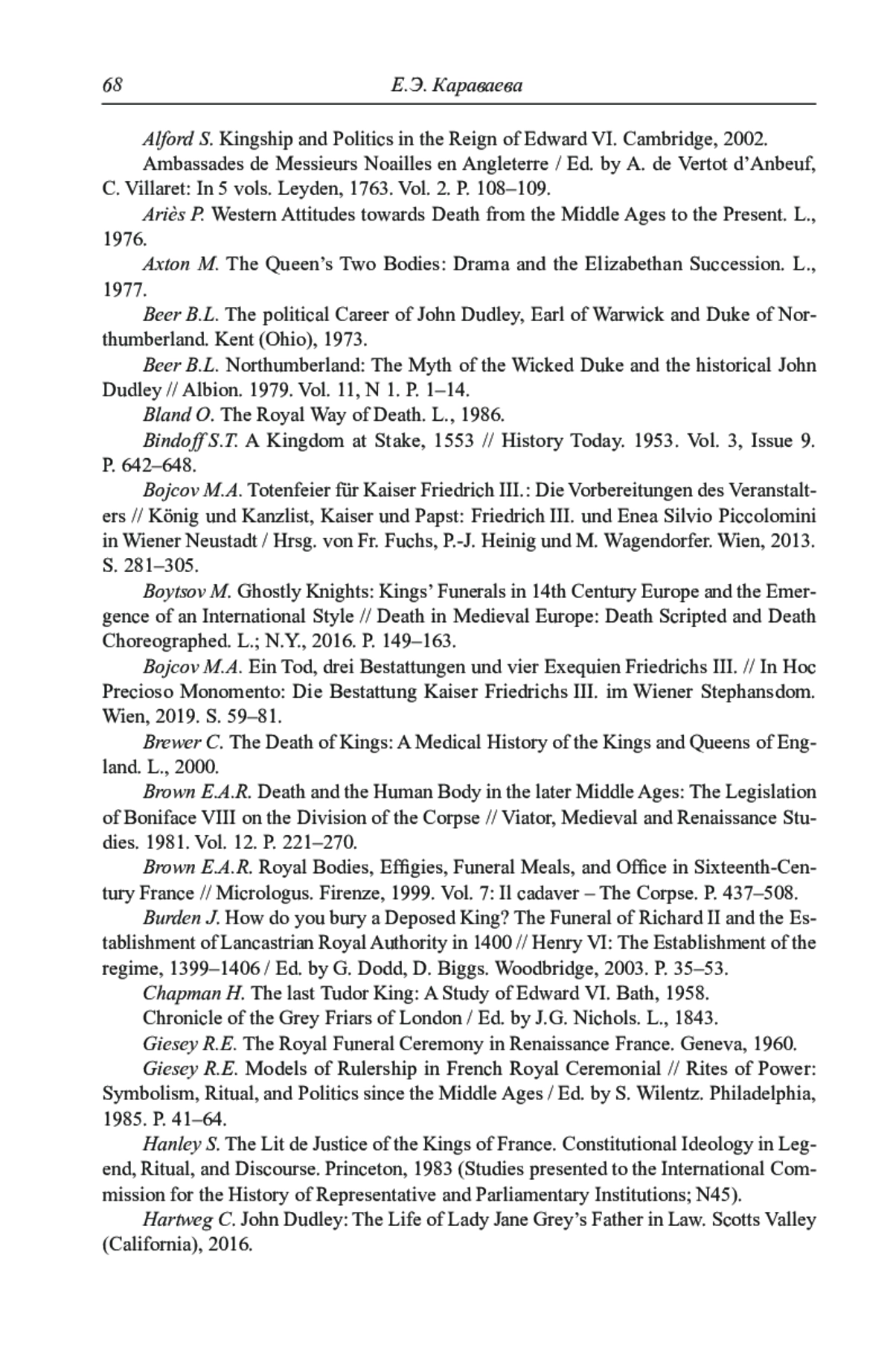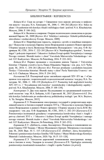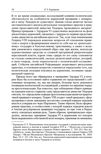 9. Караваева Е.Э. Типология церемоний поминовения иностранных монархов в Англии в эпоху Тюдоров (в печати).