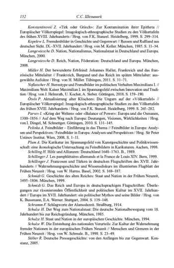 28. 	Konstantinović Z. “Tirk oder Griech”: Zur Kontamination ihrer Epitheta // Europäischer Völkerspiegel: Imagologisch-ethnographische Studien zu den Völkertafeln des frühen XVIII. Jahrhunderts / Hrsg. von F.K. Stanzel. Heidelberg, 1999. S. 299-314.