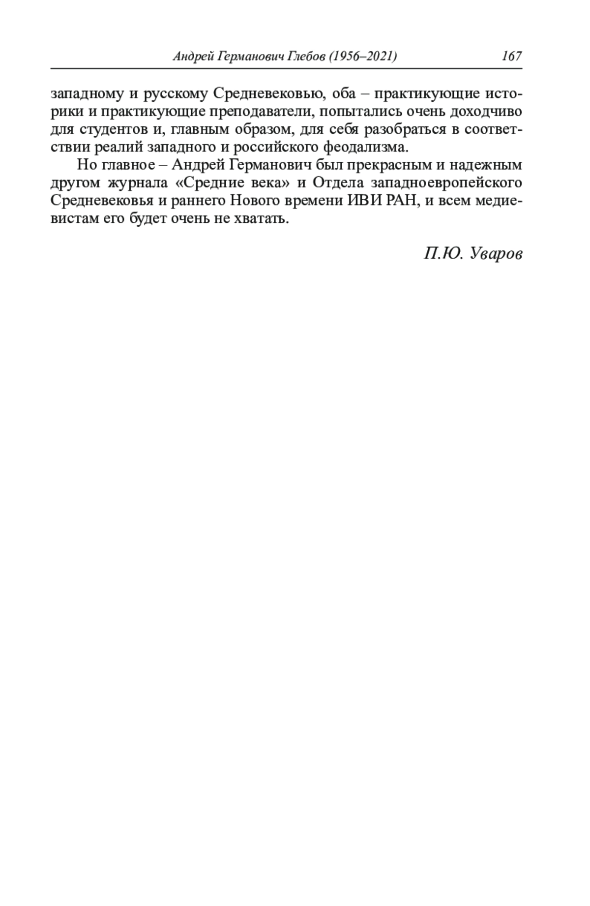 22 июля 2021 г. скончался Андрей Германович Глебов, доктор исторических наук, профессор Воронежского государственного университета, большой друг нашего журнала. Он принадлежал к тем историкам, для которых на первом месте стояло человеческое общение и только на втором – кабинетная работа. Вся его жизнь была связана с Воронежским университетом, и он был прекрасным преподавателем. Его не просто любили студенты, у него получалось преподавать, и эта его работа приносила результаты. При том, что он не дожил до 65 лет и последние годы сильно болел, двадцать его учеников защитили диссертации. Некоторые из его учеников стали уже признанными авторами нашего журнала