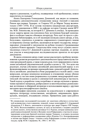 В рецензируемой монографии история дипломатических отношений между ранними Тюдорами (1485–1558) и римской курией изучается в контексте существенных изменений, происходивших во внутренней эволюции европейских национальных государств – в первую очередь, Англии – на рубеже позднего Средневековья и раннего Нового времени, укрепления в них светской власти в ущерб универсалистским притязаниям папства. Этот путь прослеживается автором книги во всей его сложности и противоречивости, учитывая двойственную природу папской власти. Автору удалось показать англо-папскую дипломатию включенной в сложные международные отношения эпохи: Итальянские войны, растущую турецкую угрозу, преодоление последствий Столетней войны и др. Автор подробно анализирует состав английских дипломатических миссий в Риме и, наоборот, их функции, особенности, связанные с тем, что эти дипломаты, находясь на службе английского короля, нередко становились и служителями римской курии