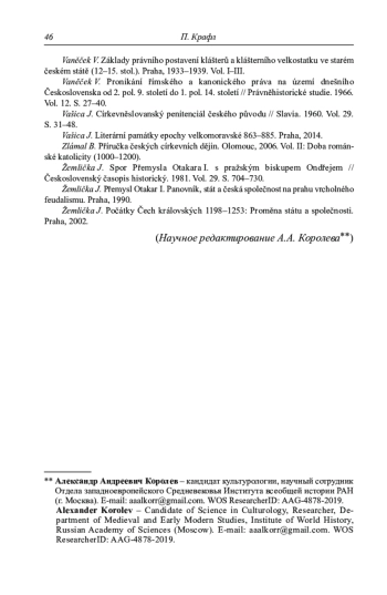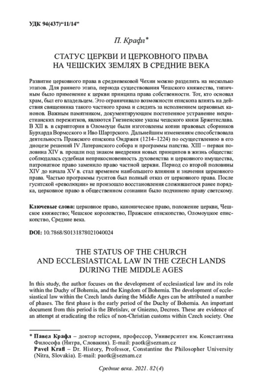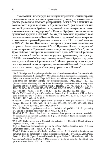 39. 	Krafl P. Prawo kościelne w Czechach i na Morawach w średniowieczu // Echa Przeszłości. 2010. Vol. 11. S. 19-36.