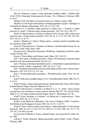 37. 	Krafl P. Synody a statuta olomoucké diecéze období středověku. Praha, 2003 (Opera Instituti historici Pragae. Series B: Editiones; Vol. 2).