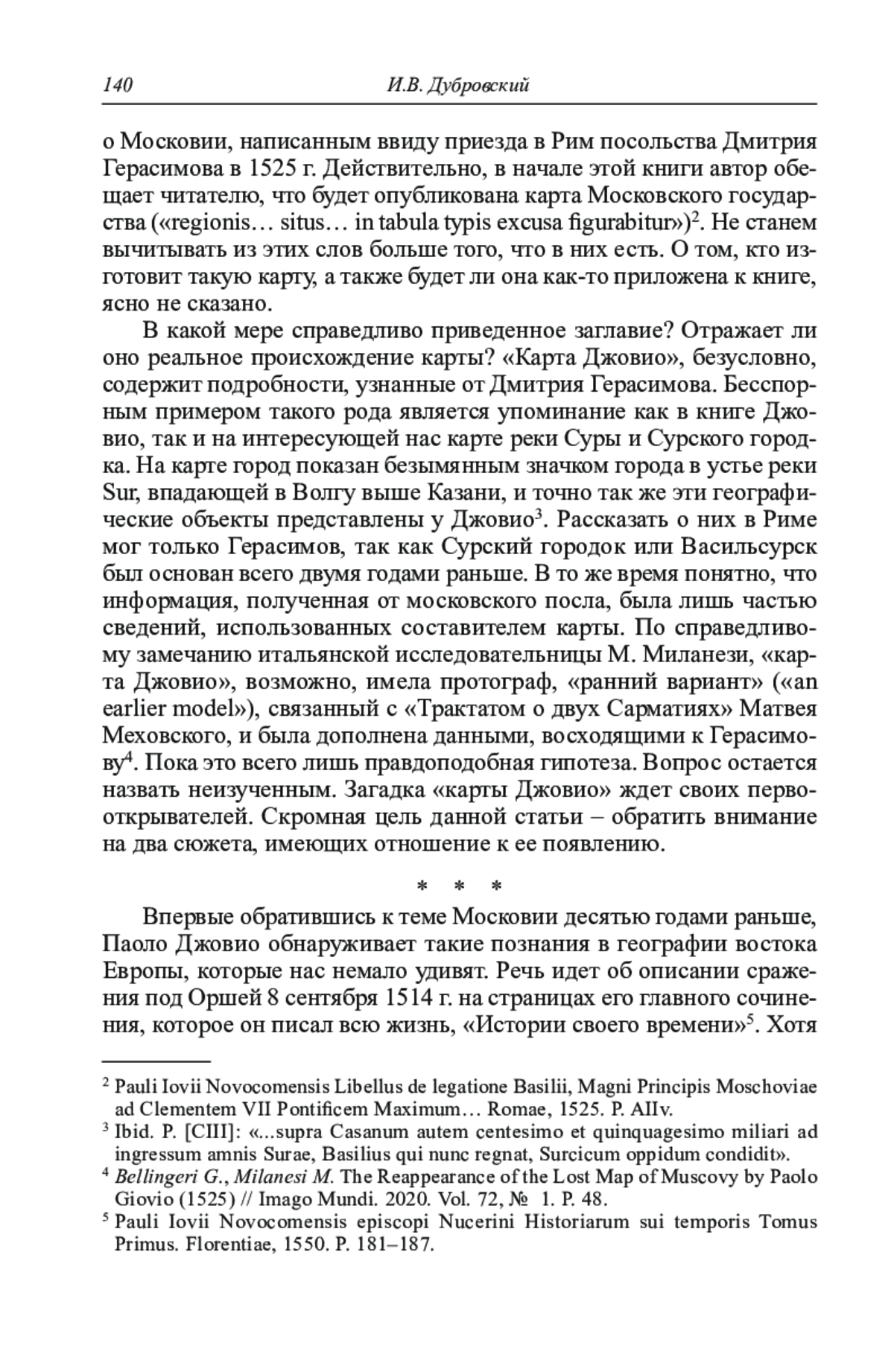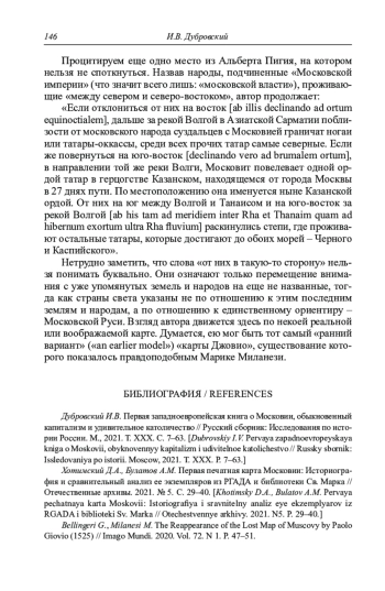 3. Bellingeri G., Milanesi M. The Reappearance of the Lost Map of Muscovy by Paolo Giovio (1525) // Imago Mundi. 2020. Vol. 72. N 1. P. 47-51.
