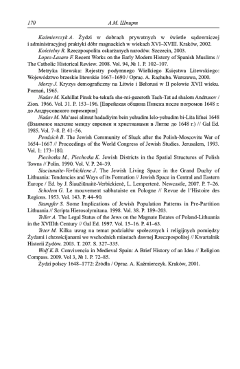 41. 	Stampfer S. Some Implications of Jewish Population Patterns in Pre-Partition Lithuania // Scripta Hierosolymitana. 1998. Vol. 38. P. 189-203.