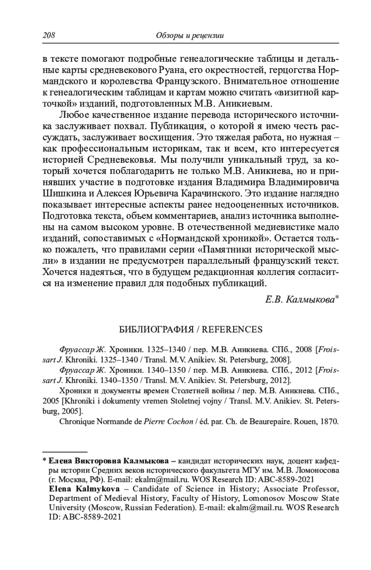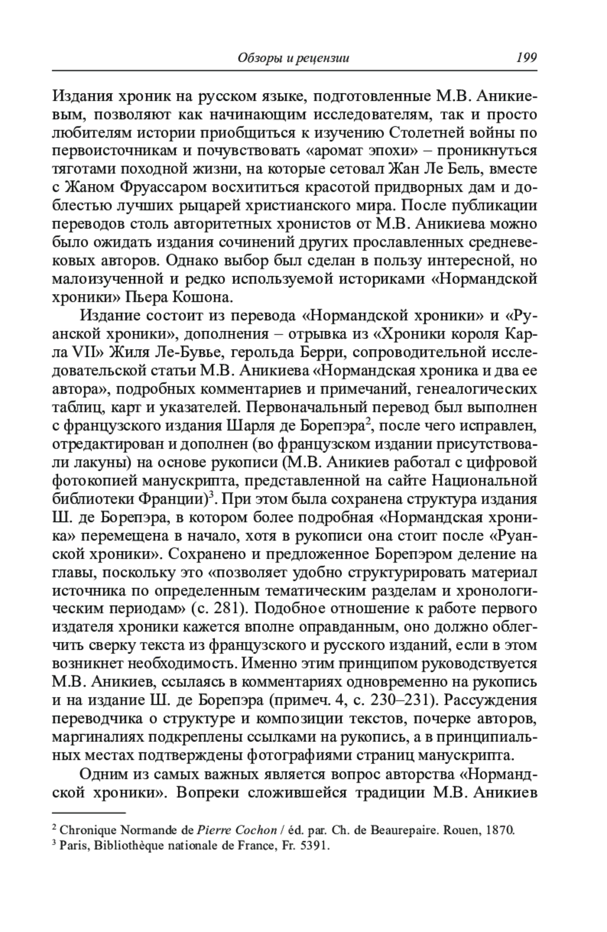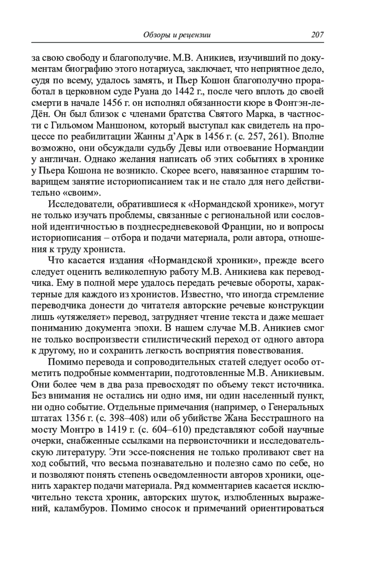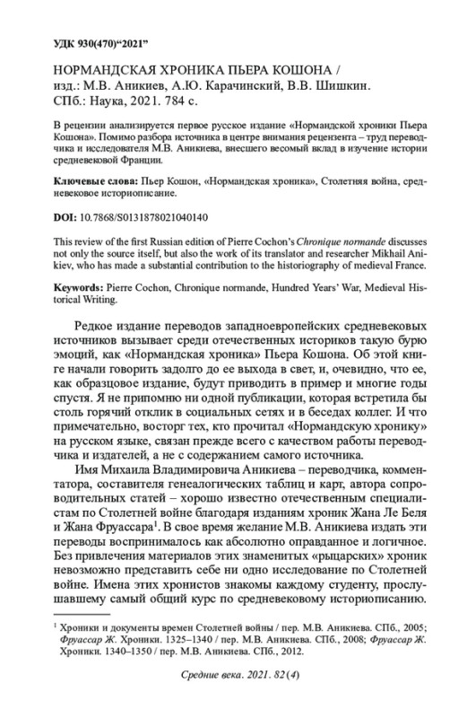 В рецензии анализируется первое русское издание «Нормандской хроники Пьера Кошона». Помимо разбора источника в центре внимания рецензента – труд переводчика и исследователя М. В. Аникиева, внесшего весомый вклад в изучение истории средневековой Франции