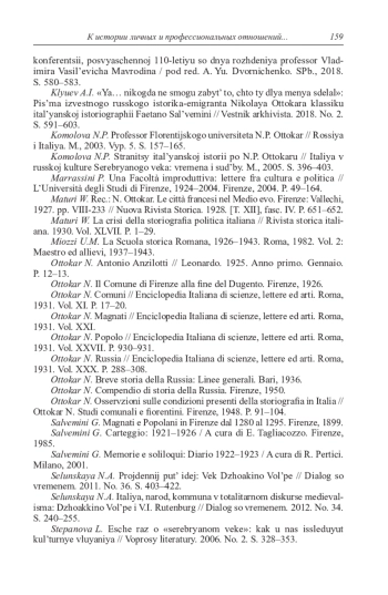 10. 	Комолова Н.П. Страницы итальянской истории по Н.П. Оттокару // Италия в русской культуре Серебряного века: времена и судьбы. М., 2005. С. 396-403’.
