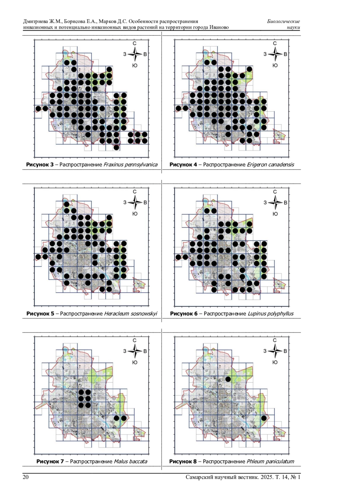 18. Борисова Е.А., Марков Д.С., Дмитриева Ж.М. Метод сеточного картирования при изучении инвазионных видов растений города Иваново // Научно-исследовательская деятельность в классическом университете: традиции и инновации: мат-лы междунар. науч.-практ. фестиваля (г. Иваново, 10-28 апреля 2023 г.). Иваново: Иван. гос. ун-т, 2023. С. 10-15.