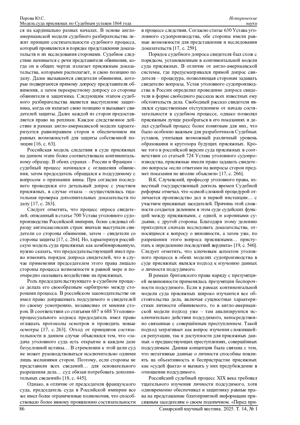 16. 	Яровая М.В. Особенности англо-американской и континентальной моделей суда присяжных и проблемы его реставрации в России // Российская юстиция. 2006. № 1. С. 61-66. EDN: HUGZOR