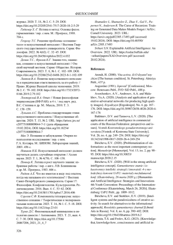 11. 	Георгиу Т.С. Решение проблемы “сознание-тело” и искусственный интеллект // Вестник Тверского государственного университета. Серия: Философия. 2022. № 4(62). С. 32-45. DOI: 10.26456/vtphilos/2022.4.032 EDN: ERLEVC