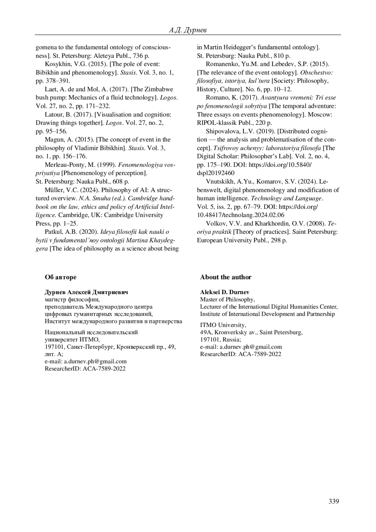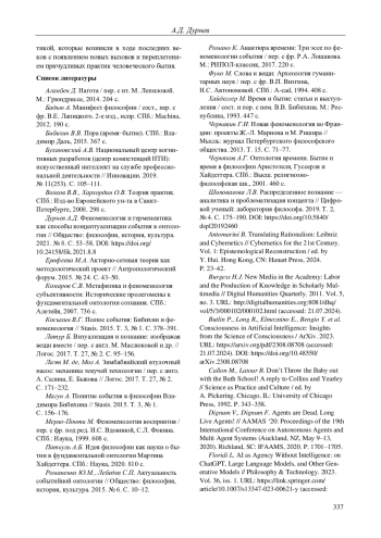 5. 	Дурнев А.Д. Феноменология и герменевтика как способы концептуализации события в онтологии // Общество: философия, история, культура. 2021. № 8. С. 53-58. DOI: 10.24158/fik.2021.8.8 EDN: ZOJAZO