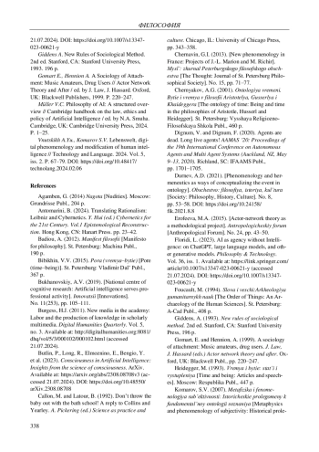 6. 	Ерофеева М.А. Акторно-сетевая теория как методологический проект // Антропологический форум. 2015. № 24. С. 43-50.