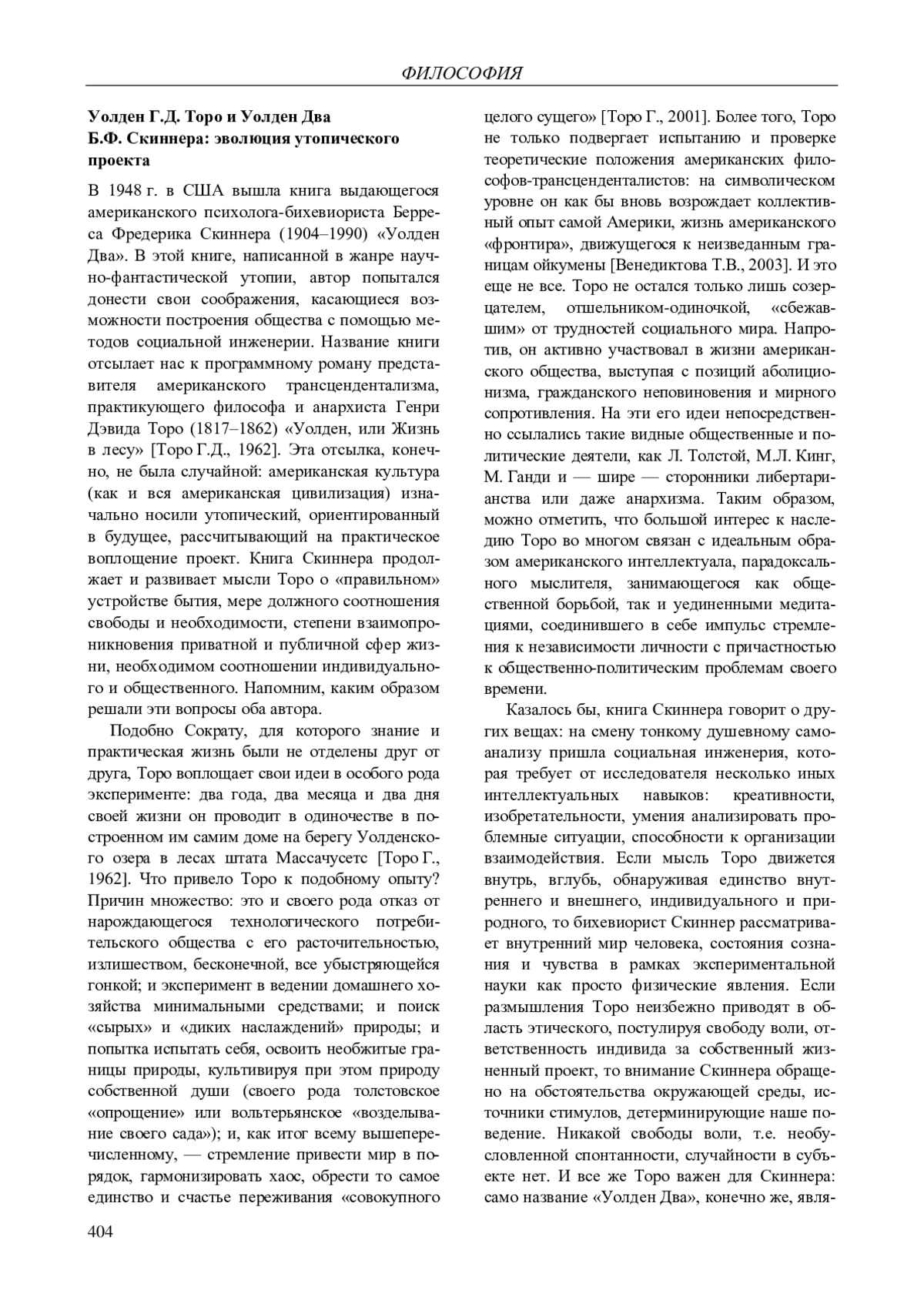 8. 	Торо Г.Д. Высшие законы / пер. с англ. З.А. Александровой, Э.Ф. Осиповой, В.В. Сонькина. М.: Республика, 2001. 412 с.