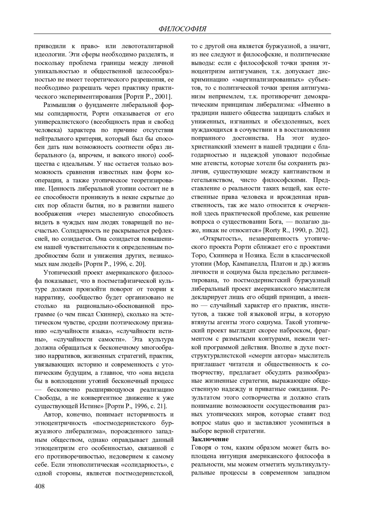6. 	Рорти Р. Случайность, ирония, солидарность / пер. с англ. И.В. Хестановой, Р.З. Хестанова. М.: Русское феноменол. о-во, 1996. 282 с.