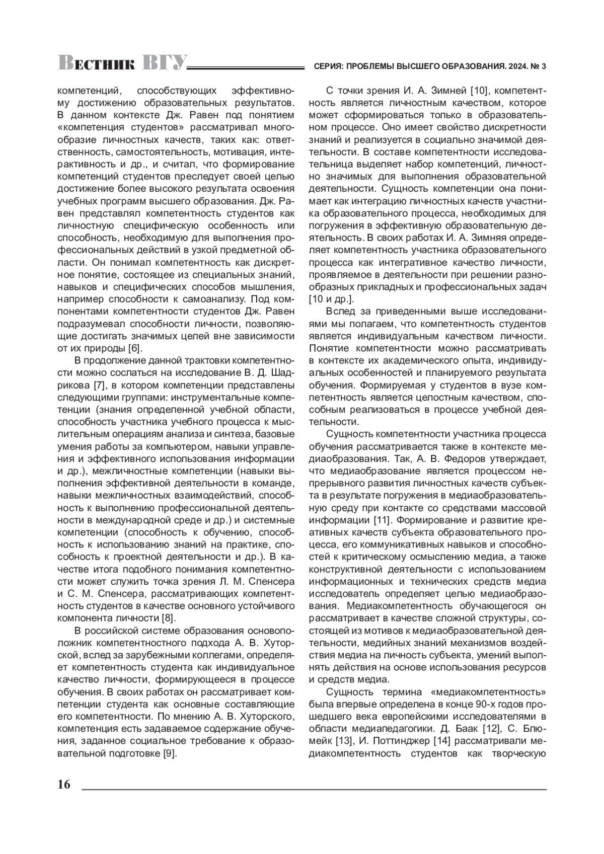 7. 	Шадриков В. Д. Новая модель специалиста: инновационная подготовка и компетентностный подход / В. Д. Шадриков // Высшее образование сегодня. - 2004 - № 8. - С. 32-38. EDN: SKGLQX