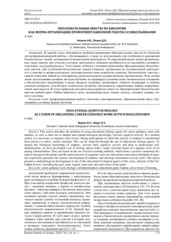 20. Марина А.В., Напалков С.В. Использование тематических образовательных Web-квестов при изучении биологии // Биология в школе. 2019. № 1. С. 33-37. EDN: ZIFHJR