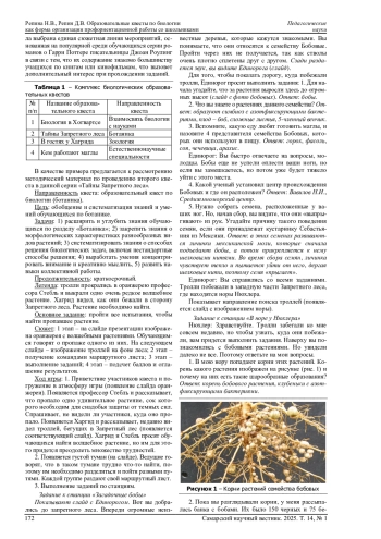 В данной статье описывается проблема применения образовательных квестов по биологии для профориентационной работы с обучающимися, а также их использование для углубления и расширения биологических знаний, активизации познавательной деятельности. В современной школе нужно организовывать такие занятия, при участии в которых деятельность учащихся преобразуется из пассивной в активную, поисковую, исследовательскую. Этого можно добиться с помощью применения образовательных биологических квестов. Для углубления биологических знаний учащихся, активизации их познавательной деятельности и помощи в профессиональном самоопределении нами разработан комплекс биологических квестов с единой сюжетной линией по популярному среди школьников художественному произведению. В их основе лежит использование активных методов обучения, что формирует положительное эмоциональное отношение к биологическим дисциплинам и всему процессу познания, активизирует учебную мотивацию и глубину усвоения материала, способствует творческому развитию обучающихся, вырабатывает навыки информационной деятельности. В статье приведена методическая разработка одного из образовательных биологических квестов данной серии «Тайны Запретного леса», включающая цель, задачи, легенду, основное задание, сюжет и ход игры.