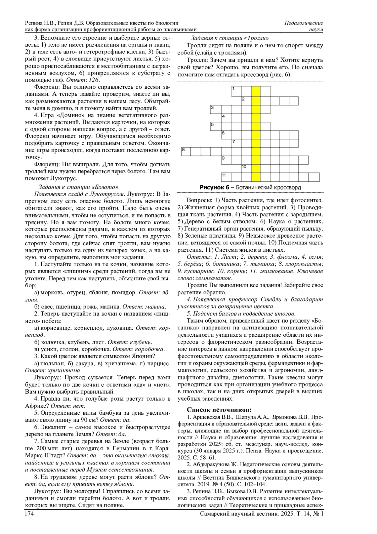 3. Репина Н.В., Быкова О.В. Развитие интеллектуальных способностей обучающихся с использованием биологических задач // Теоретические и прикладные аспекты естественнонаучного образования: сб. междунар. науч.-практ. конф. (16 мая 2024 г.). Чебоксары: ЧГПУ им. И.Я. Яковлева, 2024. С. 304-308. EDN: NVCQSY