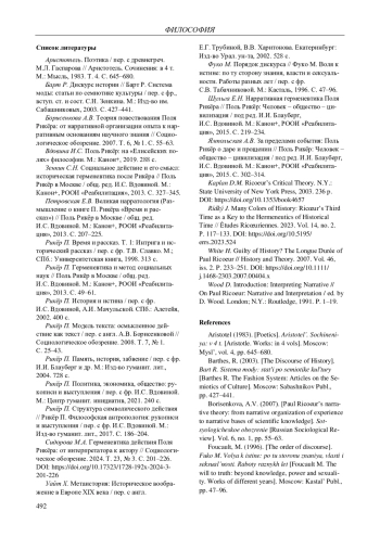 20. 	Řídký J. Many Colors of History: Ricoeur’s Third Time as a Key to the Hermeneutics of Historical Time // Études Ricoeuriennes. 2023. Vol. 14, no. 2. Р. 117-133. DOI: 10.5195/errs.2023.524