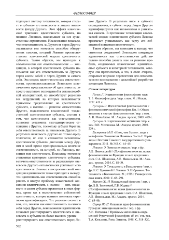 10. 	Сокулер З.А. Субъективность, язык и Другой: новые пути и искушения мысли, открываемые учением Эммануэля Левинаса. М.: Университетская книга, 2016. 240 с. EDN: VTIEZR